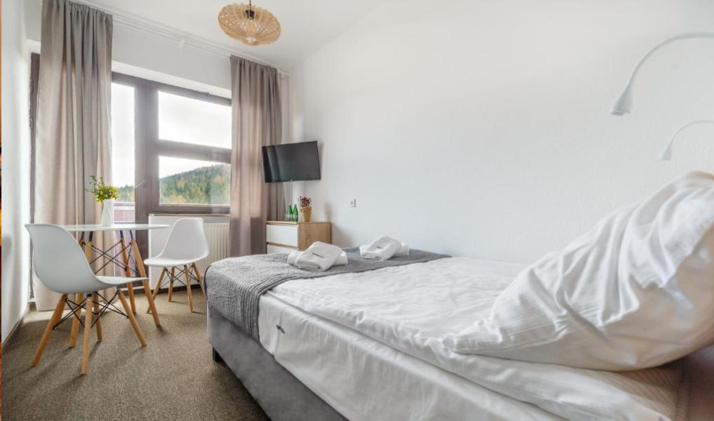 Oferujemy pobyt w budynku hotelowym w przytulnych pokojach 2-3-4-os. (55 miejsc) z pełnym węzłem sanitarnym, domkach typu BRDA (10 domków do 6 osób każdy) z dostępem do Wi-Fi oraz jedna Chatka do 7 osób. Łącznie możemy gościć 115 osób.