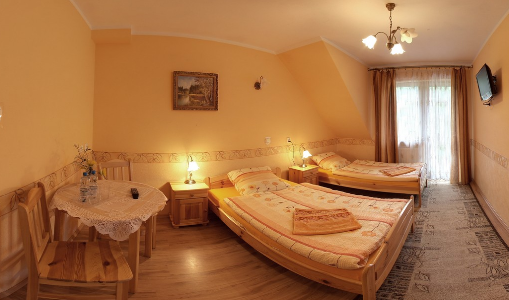 Posiadamy 250 miejsc noclegowych w komfortowych pokojach (1-2-3-4-osobowych) oraz w domkach – domki całoroczne 6-8-os./